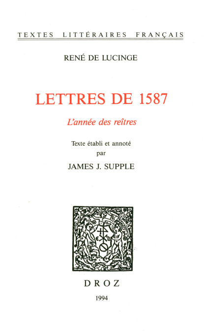 En septembre 1586 dix milles reîtres allemands et vingt milles suisses, armée de secours qu'Henri de Navarre s'était procurée, pénètrent en France pour vaincre la Ligue. La considérable armée fut néanmoins défaite, constate avec plaisir Lucinge, tant par les maladies et les intempéries que par la désunion de ses chefs et le harcèlement des soldats de Guise. En tant qu'ambassadeur savoyard Lucinge fut étroitement mêlé à ses événements, son maître Charles-Emmanuel de Savoie , "fils d'une fille de France", suivant au plus près la crise de succession qui se préparait en France. Les lettres de l'ambassadeur suivent ces péripéties. Elles sont une rare aubaine pour les historiens du XVIe siècle, servies par l'édition précise qu'en donne James Supple.