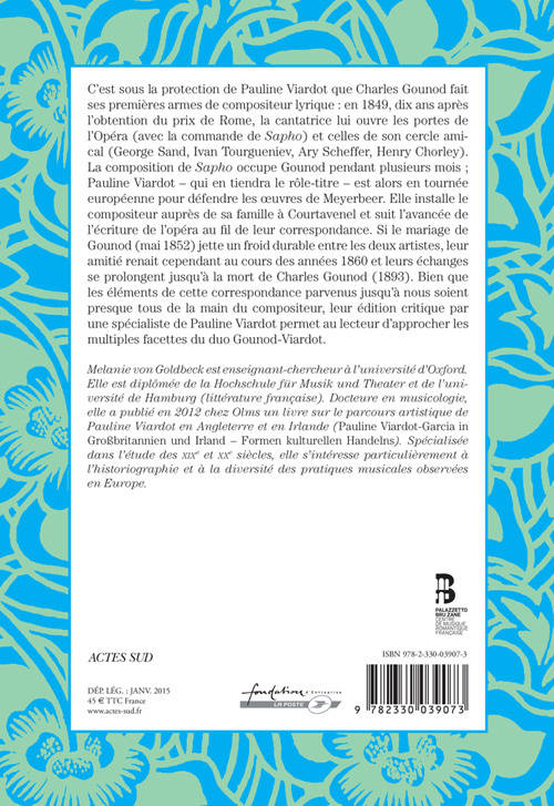 C'est sous la protection de Pauline Viardot que Charles Gounod fait ses premières armes de compositeur lyrique : en 1849, dix ans après l'obtention du prix de Rome, la cantatrice lui ouvre les portes de l'Opéra (avec la commande de Sapho) et celles de son cercle amical (George Sand, Ivan Tourgueniev, Ary Scheffer, Henry Chorley). La composition de Sapho occupe Gounod pendant plusieurs mois ; Pauline Viardot - qui en tiendra le rôle-titre - est alors en tournée européenne pour défendre les oeuvres de Meyerbeer. Elle installe le compositeur auprès de sa famille à Courtavenel et suit l'avancée de l'écriture de l'opéra au fil de leur correspondance. Si le mariage de Gounod (mai 1852) jette un froid durable entre les deux artistes, leur amitié renait cependant au cours des années 1860 et leurs échanges se prolongent jusqu'à la mort de Charles Gounod (1893). Bien que les éléments de cette correspondance parvenus jusqu'à nous soient presque tous de la main du compositeur, leur édition critique par une spécialiste de Pauline Viardot permet au lecteur d'approcher les multiples facettes du duo Gounod-Viardot.