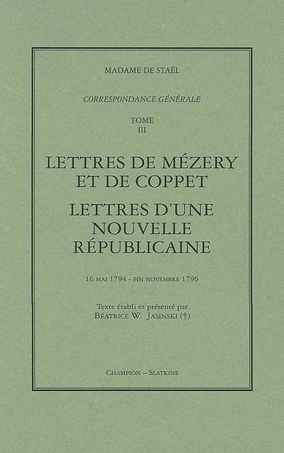Lettres de Mézery et de Coppet ; Lettres d'une nouvelle républicaine