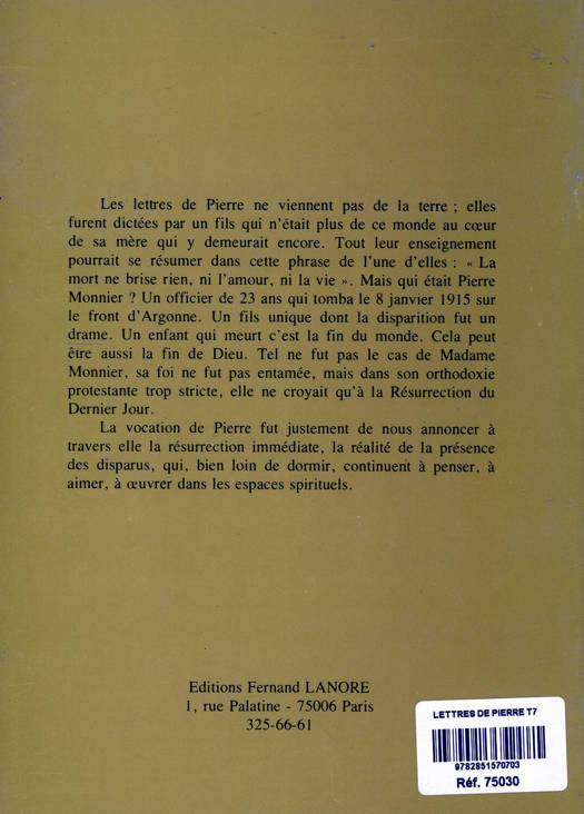 Les lettres de Pierre ne viennent pas de la terre ; elles furent dictées par un fils qui n'était plus de ce monde au cœur de sa mère qui y demeurait encore. Tout leur enseignement pourrait se résumer dans cette phrase : « La mort ne brise rien, ni l'amour, ni la vie.» La vocation de Pierre fut justement de nous annoncer la résurrection immédiate, la réalité de la présence des disparus, qui, bien loin de dormir, continuent à penser, à aimer, à œuvrer dans les espaces spirituels.