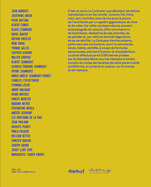 C'est un autre Le Corbusier que permettent de découvrir les lettres reproduites ici en fac-similé. Ce corpus en grande partie inédit dévoile une étonnante lecture critique par Le Corbusier de sa propre oeuvre. Car c'est une véritable mise à nu qu'offrent ces lettres où le Corbusier livre ses « tripes » : là il fanfaronne, ici il doute ou se moque de lui-même. L'accompagnement rigoureux de Guillemette Morel Journel dans la lecture de cette correspondance permet d'accéder à la complexité d'une trajectoire après la polémique du printemps.
