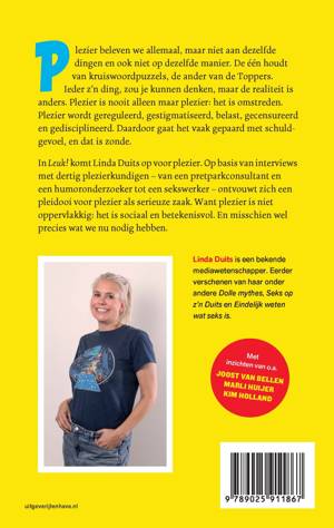 Plezier beleven we allemaal, maar op verschillende manieren en we nemen het zelden serieus. In plaats daarvan moet alles nuttig zijn. Sporten doen we om fit worden, festivals zijn netwerkmomenten en series kijken we om mee te kunnen praten op kantoor. Plezier om het plezier is verdacht of gaat gepaard met schuldgevoel. In dit boek bevrijdt Linda Duits ons van deze last en biedt ze zeven principes waarmee je onbekommerd en optimaal plezier kan hebben. Leuk! is het ultieme boek voor een leuker leven.