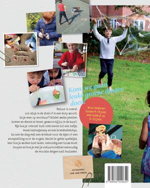 Natuur is overal, ook als je in de stad of in een dorp woont. Ga je mee op avontuur? Ontdek welke planten, bomen en dieren er leven, gewoon bij jou in de buurt. Kijk hoe je ‘onkruid’ kunt omtoveren tot een zalfje, maak kastanjezeep en bak brandnetelchips. Ga aan de slag met een drinkbak voor de bijen of een snoepketting voor de vogels. Verzin te gekke spelletjes, leer hoe je wolken kunt lezen, vakkundig een touw moet knopen en hoe je met je natuurvondsten eenvoudig de mooiste dingen kunt knutselen.