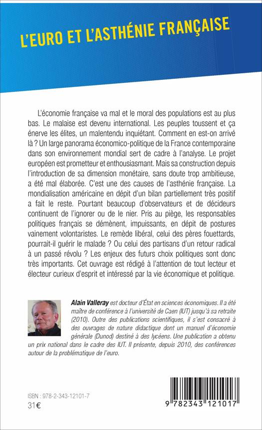 L'économie française va mal et le moral des populations est au plus bas. Le malaise est devenu international. Comment en est-on arrivé là ? Dans cet ouvrage, un large panorama économico-politique de la France contemporaine dans son environnement mondial sert de cadre à l'analyse. Il revient donc sur les causes de l'asthénie française, et est rédigé à l'attention de tout lecteur et électeur curieux d'esprit et intéressé par la vie économique et politique.
