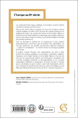 La construction d’un espace politique, économique, social et culturel européen n’est pas une idée neuve. Mais au 19e siècle, l’idée se heurta à la force de la nation comme modèle politique. De 1815 à 1871, l’Europe des nations domine la vie politique du temps : du congrès de Vienne et de la Sainte-Alliance à l’achèvement de l’unité italienne et allemande, des peuples aspirent à former des nations érigées en États, sous l’il bienveillant ou hostile des grandes puissances. Tout en dressant le portrait de ces puissances et des régions particulièrement concernées par la question des nationalités, cet ouvrage s’intéresse aux grands mouvements culturels européens – comme le romantisme – et montre l’essor économique parallèle de l’Europe. Il analyse ensuite l’Europe des nationalismes de 1871 à 1914, période de tensions politiques, économiques, culturelles, militaires (naissance de la Triple-Entente et de la Triple-Alliance). L’accent est mis sur les mouvements d’idées, sur l’émergence simultanée de courants socialistes pacifistes et internationalistes et de courants nationalistes bellicistes et antisémites. L’Europe domine le monde par la colonisation et par la culture, mais cette domination externe s’accompagne de déchirements internes, autour des Balkans ou du Rhin, qui entraînent l’Europe sur la voie de la « marche à la guerre ».