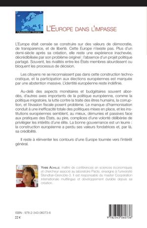 Plus d'un demi-siècle après sa création, l'Europe, censée se construire sur des valeurs de démocratie, de transparence et de liberté, reste une expérience inachevée faute d'un projet politique partagé. L'abstention aux élections le montre : l'identité européenne reste indéfinie et la plupart des citoyens ne se reconnaissent pas dans cette construction. La bonne gouvernance est un leurre : la construction européenne a perdu ses valeurs fondatrices et, par là sa crédibilité. Il reste à réinventer les contours d'une Europe tournée vers l'intérêt général.