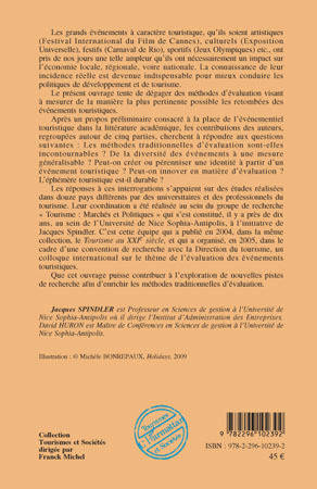 Les grands événements à caractère touristique - artistiques, culturels, festifs ou sportifs - ont pris une telle ampleur qu'ils ont nécessairement un impact sur l'économie locale, régionale, voire nationale. Cet ouvrage dégage des méthodes d'évaluation pour mesurer de la manière la plus pertinente les retombées des événements touristiques. Les méthodes traditionnelles d'évaluation sont-elles incontournables ? Peut-on créer ou pérenniser une identité à partir d'un événement touristique ? Peut-on innover en matière d'évaluation ? L'éphémère touristique est-il durable ?