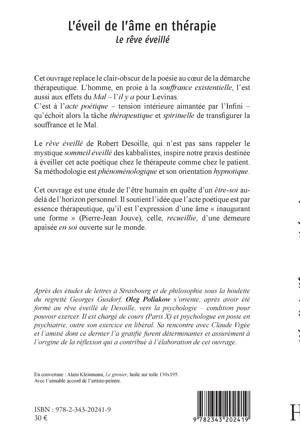 Cet ouvrage replace le clair-obscur de la poésie au cur de la démarche thérapeutique. Il s'agit d'une étude de l'être humain en quête d'un être-soi au-delà de l'horizon personnel. Il soutient l'idée que l'acte poétique est par essence thérapeutique, qu'il est l'expression d'une âme "inaugurant une forme" (Jean-Pierre Jouve), celle, recueillie, d'une demeure apaisée en soi ouverte sur le monde.