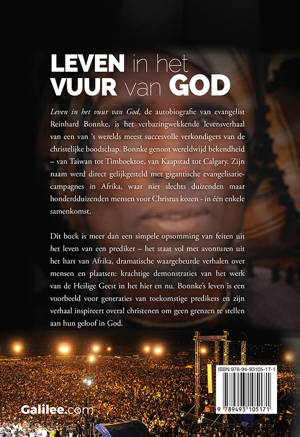 Leven in het vuur van God, de autobiografie van evangelist Reinhard Bonnke, is het verbazingwekkende levensverhaal van een van ‘s werelds meest succesvolle verkondigers van de christelijke boodschap. Bonnke geniet wereldwijd bekendheid – van Taiwan tot Timboektoe, van Kaapstad tot Calgary. Zijn naam wordt direct gelijkgesteld met gigantische evangelisatie-campagnes in Afrika, waar niet slechts duizenden maar honderdduizenden mensen voor Christus kiezen- in één enkele samenkomst.