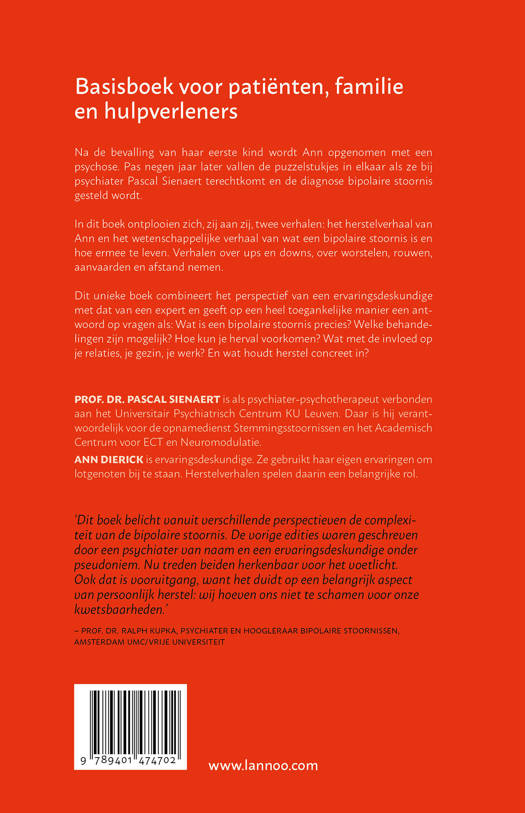 Dit unieke boek combineert het perspectief van een ervaringsdeskundige met dat van een expert en geeft op een heel toegankelijke manier een antwoord op vragen als: Wat is een bipolaire stoornis precies? Welke behandelingen zijn mogelijk? Hoe kun je herval voorkomen? Wat met de invloed op je relaties, je gezin, je werk? En wat houdt herstel concreet in?