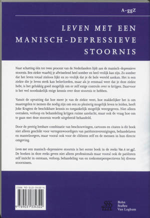 Naar schatting één tot twee procent van de Nederlanders lijdt aan de manisch-depressieve stoornis. Een ziekte waarbij je afwisselend heel somber en heel vrolijk kan zijn. Zo somber dat het leven totaal zinloos lijkt en zo vrolijk dat je de hele wereld aankan. Het is een ziekte die je leven sterk kan beïnvloeden, maar als je een maal weet dat je deze ziekte hebt, is het gelukkig goed mogelijk om er zelf enige controle over te krijgen. Daarvoor is het wel noodzakelijk enige kennis over deze stoornis te hebben. Vanuit de opvatting dat hoe meer je van de ziekte weet, hoe makkelijker het is om maatregelen te nemen die nodig zijn om een zo plezierig mogelijk leven te leiden, heeft Joke Kragten de beschikbare kennis zo toegankelijk mogelijk weergegeven. Niet alleen oorzaken, verloop en behandeling krijgen ruime aandacht, maar ook de vraag hoe om te gaan met deze stoornis wordt uitgebreid behandeld. Door de prettig leesbare mix van beschouwingen, cartoons en citaten is dit boek niet alleen geschikt voor vertegenwoordigers van cliëntenverengingen, behandelaren en mantelzorgers, maar vooral ook voor de cliënten zelf en de mensen in hun directe omgeving. Dit boek is het eerste in de reeks Van A tot ggZ. De boeken in deze reeks geven niet alleen professionals maar vooral ook de cliënten zélf inzicht in onstaan, verloop, behandeling van en toekomstperspectieven bij diverse stoornissen. Uitgangspunt bij de beschrijving van de stoornissen is DSM-IV. Kijk voor meer informatie over de reeks Van A tot ggZ en de auteurs eens op www.a-ggz.nl/