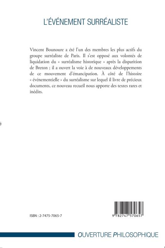 Vincent Bounoure a été l'un des membres les plus actifs du groupe surréaliste de Paris. Il s'est opposé aux volontés de liquidation du "surréalisme historique" après la disparition de Breton ; il a ouvert la voie à de nouveaux développements de ce mouvement d'émancipation. A côté de l'histoire "événementielle" du surréalisme sur lequel il livre de précieux documents, ce nouveau recueil nous apporte des textes rares et inédits.