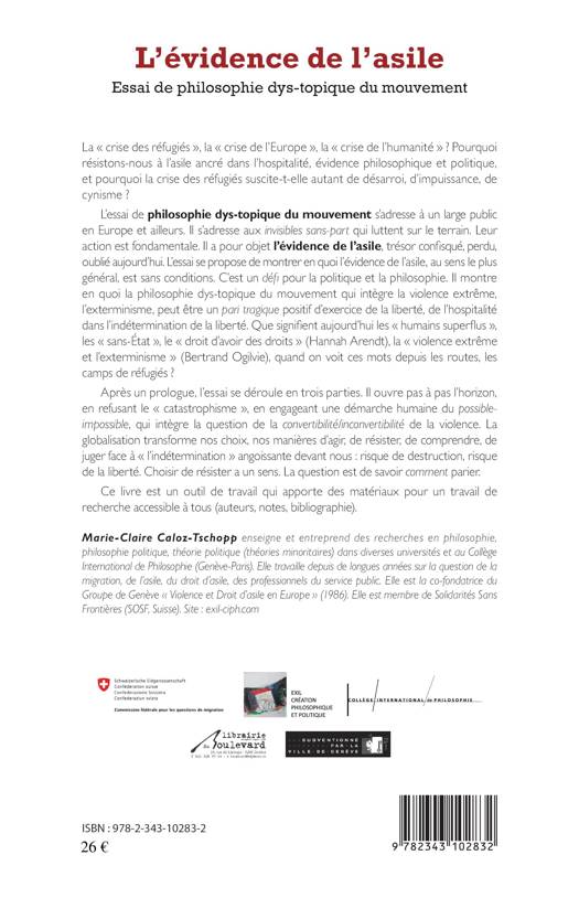 La "crise des réfugiés", la "crise de l'Europe", la "crise de l'humanité" ? Pourquoi résistons-nous à l'asile ancré dans l'hospitalité, évidence philosophique et politique, et pourquoi la crise des réfugiés suscite-t-elle autant de désarroi, d'impuissance, de cynisme ? Cet essai est un défi pour la politique et la philosophie. Il montre en quoi la philosophie dys-topique du mouvement qui intègre la violence extrême peut être un pari tragique positif d'exercice de la liberté, de l'hospitalité. Que signifie aujourd'hui les "humains superflus", les "sans-Etat", "le droit d'avoir des droits", la "violence extrême", quand on voit ces mots depuis les routes, les camps de réfugiés ? Choisir de résister a un sens. La question est de savoir comment parier.