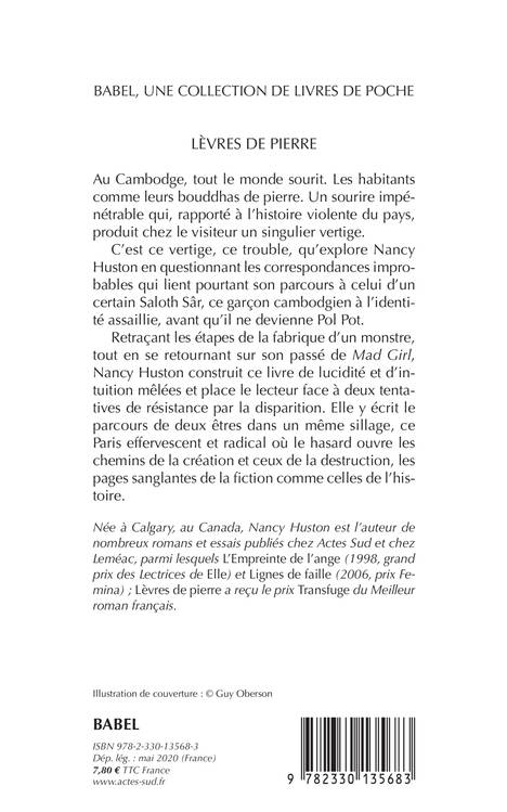 Comment et pourquoi Nancy Huston écrit-elle aujourd'hui le récit de ses années de formation en miroir de celles de Saloth Sâr, qui, avant de devenir Pol Pot, l'un des pires dictateurs du XXe siècle, fut un jeune cambodgien venu étudier à Paris, entrant en politique avec force, guerrier intrépide et impassible ? Entre autofiction et exofiction, l'écrivaine remonte les chemins de la création et de la destruction, tisse les liens existant entre son récit propre et celui de l'histoire du monde.