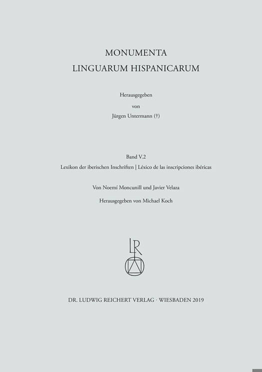 This new volume in the Monumenta Linguarum Hispanicarum series (MLH V.2), written by N. Moncunill and J. Velaza, provides an annotated glossary of the Iberian language as known through its epigraphic corpus. Although inserted in its corresponding place of MLH, this work reflects the state of knowledge of the Iberian language and its epigraphic culture at the time of its publication. This is the reason why it not only includes the inscriptions collected in the first three volumes of MLH - namely, those devoted respectively to the monetary legends (MLH I), the Iberian inscriptions of southern France (MLH II) and the Iberian inscriptions of Spanish territory (MLH III) - but also incorporates the texts found subsequently, until 2015.