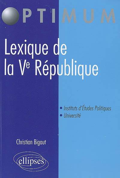 Ce Lexique de la Ve république vise à faire connaître aux élèves et étudiants des facultés de Droit et Instituts d’Études Politiques, mais également à tout citoyen intéressé par la vie politique et institutionnelle – ou qui veut la comprendre –, les mots et expressions d’usage courant dans le discours et la vie politique. Il contient notamment les définitions précises du droit constitutionnel concernant la vie interne des assemblées et de l’exécutif à jour de la réforme constitutionnelle de juillet 2008.