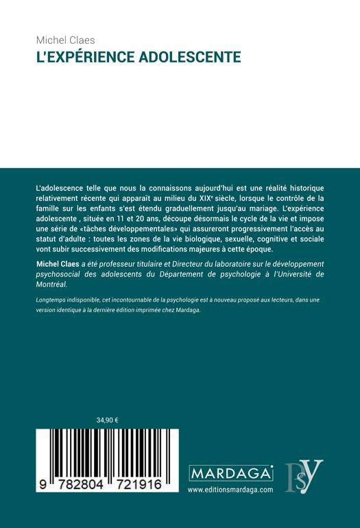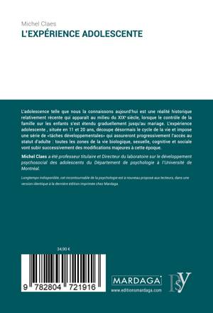 e siècle, lorsque le contrôle de la famille sur les enfants s'est étendu graduellement jusqu'au mariage. L'expérience adolescente, située en 11 et 20 ans, découpe désormais le cycle de la vie et impose une série de "tâches développementales" qui assureront progressivement l'accès au statut d'adulte: toutes les zones de la vie biologique, sexuelle, cognitive et sociale vont subir successivement des modifications majeures à cette époque.