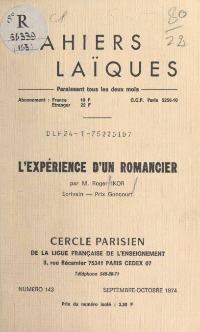 Conférence donnée au Cercle parisien, mercredi 6 février 1974