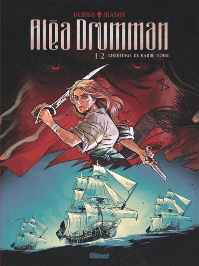 Se pourrait-il que Barbe Noire, le plus redouté des pirates, ait perdu la tête, décapité en livrant bataille à la Royal Navy ? Hantée par cette vision de cauchemar, Aléa Drumman, la propre fille du forban, décide d’embarquer pour les Bahamas en compagnie de Maynard, un officier anglais qui aurait été témoin des dernières heures du pirate légendaire. D’après lui, un dénommé Rackham garderait secrètement la tête du défunt dans un coffre, et Aléa compte bien se faire engager comme membre de son équipage pour découvrir coûte que coûte ce qui s’est passé ! Déguisée en jeune mousse, la voilà à bord d’un navire pirate, entourée par une horde de truands au service d’un usurpateur qui se joue du destin. Car cette relique funeste possède un grand pouvoir. Toujours hantée par le fantôme de son père, Aléa n’est qu’au début de son périlleux voyage… Premier tome d’un diptyque chargé d’embruns et de mystères, Aléa Drumman nous invite à vivre un récit de piraterie teinté de fantastique noir, porté par une héroïne courageuse. Bravant les flots, Siamh et Dobbs forment un duo aguerri pour croquer cet univers exaltant et nous ouvrent les portes d’une aventure qui revisite le mythe du plus grand pirate de tous les temps !