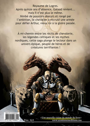 Résumé : Royaume de Logres. Après quinze ans d’absence, Galaad revient, mais il n’est plus le même. Nimbé de pouvoirs obscurs et rongé par l’ambition, le chevalier a recruté une armée pour défier Arthur, vieux roi à la gloire passée. Cette armée, aux objectifs belliqueux, use et abuse d’une magie qui semble invincible et bientôt un voile obscur s’étend sur le royaume de Logres. Merlin lui-même semble vaincu. Cependant des ressources naissantes voient le jour et peuvent faire changer les choses…
