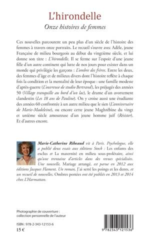 Ces nouvelles parcourent un peu plus d'un siècle de l'histoire des femmes à travers onze portraits. Le recueil s'ouvre avec Adèle, jeune Française de milieu bourgeois au début du vingtième siècle, et lui donne son titre : L'hirondelle. Il se ferme sur l'espoir d'une jeune fille d'un autre continent qui lutte de nos jours pour exister dans un monde qui privilégie les garçons. Entre les deux, on trouve des femmes d'âge et de milieux divers dont l'histoire reflète à chaque fois la condition et la mentalité de leur époque.