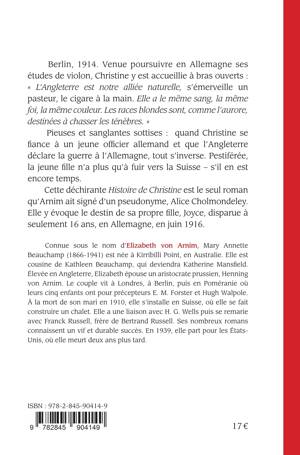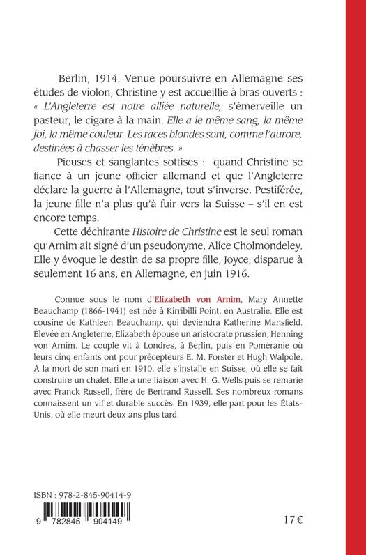 Christine, publiée en pleine guerre, en 1917, est le seul roman qu’Elizabeth