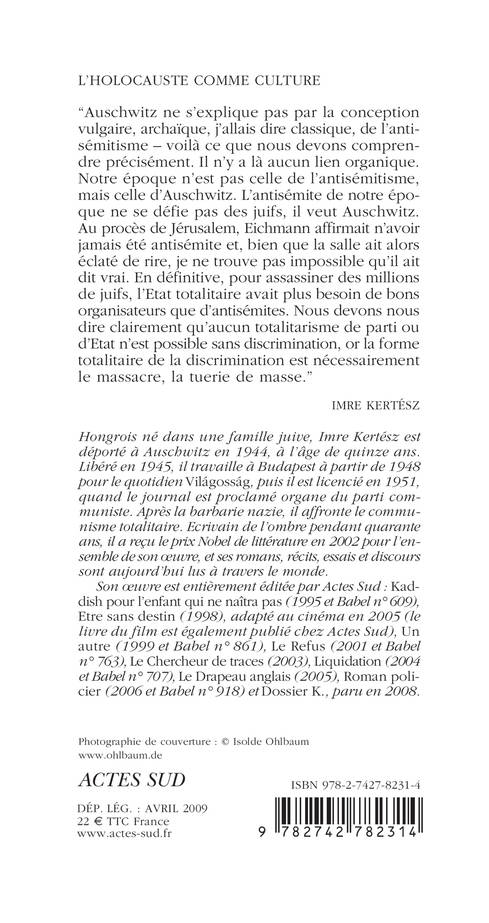 "Auschwitz ne s'explique pas par la conception vulgaire, archaïque, j'allais dire classique, de l'antisémitisme - voilà ce que nous devons comprendre précisément. Il n'y a là aucun lien organique. Notre époque n'est pas celle de l'antisémitisme, mais celle d'Auschwitz. L'antisémite de notre époque ne se défie pas des juifs, il veut Auschwitz. Au procès de Jérusalem, Eichmann affirmait n'avoir jamais été antisémite et, bien que la salle ait alors éclaté de rire, je ne trouve pas impossible qu'il ait dit vrai. En définitive, pour assassiner des millions de juifs, l'Etat totalitaire avait plus besoin de bons organisateurs que d'antisémites. Nous devons nous dire clairement qu'aucun totalitarisme de parti ou d'Etat n'est possible sans discrimination, or la forme totalitaire de la discrimination est nécessairement le massacre, la tuerie de masse."