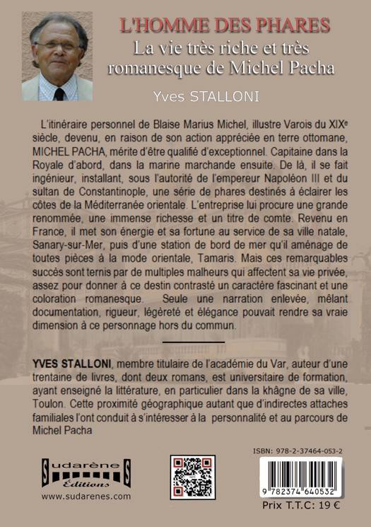 Découvrez l'ascension fulgurante d'un personnage hors normes du XIXe siècle ! L'itinéraire personnel de Blaise Marius Michel, illustre Varois du XIXe siècle, devenu, en raison de son action appréciée en terre ottomane, Michel Pacha, mérite d'être qualifié d'exceptionnel. Simple mousse au départ, il gagne, grâce à son travail et à son talent, ses galons de capitaine qui lui permettent de commander des navires dans la Royale d'abord, dans la marine marchande ensuite. De là, il se fait ingénieur, installant, sous l'autorité de l'empereur Napoléon III et du sultan de Constantinople, une série de phares destinés à éclairer les côtes de la Méditerranée orientale. L'entreprise lui procure une grande renommée, une immense richesse et un titre de comte. Revenu en France, il met son énergie et sa fortune au service de sa ville natale, Sanary-sur-Mer, puis d'une station de bord de mer qu'il aménage de toutes pièces à la mode orientale, Tamaris. Mais ces remarquables succès sont ternis par de multiples malheurs qui affectent sa vie privée, assez pour donner à ce destin contrasté un caractère fascinant et une coloration romanesque. Seule une narration enlevée, mêlant documentation, rigueur, légèreté et élégance, pouvait rendre sa vraie dimension à ce personnage hors du commun. EXTRAIT Les enfants de l'école des Soeurs, vêtus de leurs habits du dimanche, garçons et filles, en rang par deux, ouvrent le cortège qui monte à la chapelle Notre-Dame de Pitié. L'un d'eux, en surplis, à côté du prêtre, porte la grande croix d'argent sortie pour l'occasion. Plusieurs voies permettent d'atteindre la vieille chapelle: la montée des Oratoires, la montée de la Carrerade-des-Riberado et le chemin de la Colline, qui part de la pointe de Bau Rouge et, suivant le bord de mer, surplombe la carrière des Baux. En ce jour de l'Assomption la petite ville de Saint-Nazaire, proche de Toulon, dans le Var, fête sa protectrice, la Vierge Marie, qui veille sur l'importante corporation des pêcheurs et c