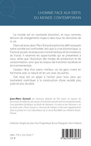 Le monde est en constante évolution, et nous sommes témoins de changements majeurs dans tous les domaines de la vie. Dans cet essai, Jean-Marc Esnault explore les défis auxquels notre société est confrontée, tels que la crise économique, la fracture sociale, les enjeux environnementaux et les mutations du travail. Il examine les opportunités qui se présentent à nous, telles que l’évolution des modes de production et de consommation, ainsi que les enjeux de transition sociétale et environnementale. L’auteur rêve d’un avenir meilleur, où les gens vivent en harmonie avec la nature et les uns avec les autres. Cet essai est un appel à l’action pour tous ceux qui souhaitent contribuer à la construction d’une société plus juste et plus durable.