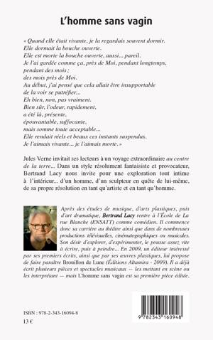 Jules Verne invitait ses lecteurs à un voyage extraordinaire au centre de la Terre... Dans un style résolument fantaisiste et provocateur, Bertrand Lacy nous invite pour une exploration tout intime à l'intérieur... d'un homme, d'un sculpteur en quête de lui-même, de sa propre résolution en tant qu'artiste et en tant qu'homme.