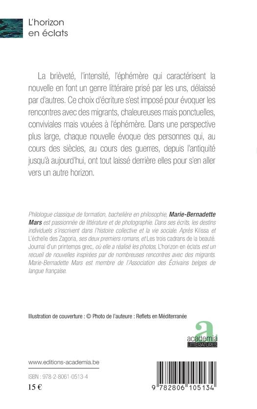 La brièveté, l'intensité, l'éphémère qui caractérisent la nouvelle en font un genre littéraire prisé par les uns, délaissé par d'autres. Ce choix d'écriture s'est imposé pour évoquer les rencontres avec des migrants, chaleureuses mais ponctuelles, conviviales mais vouées à l'éphémère. Dans une perspective plus large, chaque nouvelle évoque des personnes qui, au cours des siècles, au cours des guerres, depuis l'antiquité jusqu'à aujourd'hui, ont tout laissé derrière elles pour s'en aller vers un autre horizon.