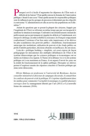 Pourquoi est-il si facile d’augmenter les dépenses de l’État mais si difficile de les baisser ? Pour quelles raisons le domaine de l’intervention publique s’étend-il sans cesse ? Dans quelle mesure les responsables politiques sont-ils influencés par les groupes de pression et déterminés par des objectifs à court terme ? L’administration est-elle au service des populations ou d’elle-même ?