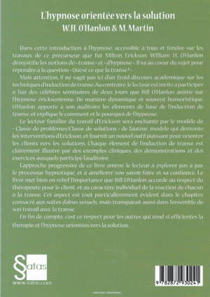 Dans cette introduction à l'hypnose, accessible à tous et fondée sur les travaux de ce précurseur que fut Milton Erickson, William H. O'Hanlon démystifie les notions de "transe" et "d'hypnose". Il va au coeur du sujet pour répondre à la question "Qu'est-ce que la transe ?" Mais attention, il ne s'agit pas ici d'un froid discours académique sur les techniques d'induction de transe. Au contraire, le lecteur est invité à participer à l'un des célèbres séminaires de deux jours que Bill O'Hanlon anime sur l'hypnose éricksonienne. De manière dynamique et souvent humoristique, O'Hanlon apporte à son auditoire les éléments de base de l'induction de transe, et explique le comment et le pourquoi de l'hypnose. Le lecteur familier du travail d'Erickson sera enchanté par le modèle de "Classe de problèmes/Classe de solutions" de l'auteur, modèle qui démonte les interventions d'Erickson, et fournit un nouvel outil puissant pour orienter les clients vers les solutions. Chaque élément de l'induction de transe est clairement illustré par des exemples cliniques, des démonstrations et des exercices auxquels participe l'auditoire. L'approche progressive de ce livre amène le lecteur à explorer pas à pas le processus hypnotique, et à améliorer son savoir-faire et sa confiance. Le livre met bien en relief l'importance que Bill O'Hanlon accorde au respect du thérapeute pour le client, et au caractère individuel de la réaction de chacun à la transe. Cet aspect est tout particulièrement évident dans le chapitre consacré aux suites d'abus sexuels, mais transparaît aussi dans l'ensemble de son travail avec la transe. En fin de compte, c'est ce respect pour les autres qui rend si efficientes la thérapie et l'hypnose orientées vers la solution.