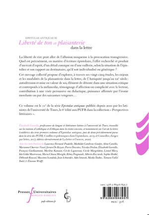 Ce volume est le 11e de la série Epistulae antiquae publiée depuis 2000 par les latinistes de l’université de Tours, le 6e édité aux PUFR dans la collection « Perspectives littéraires ».