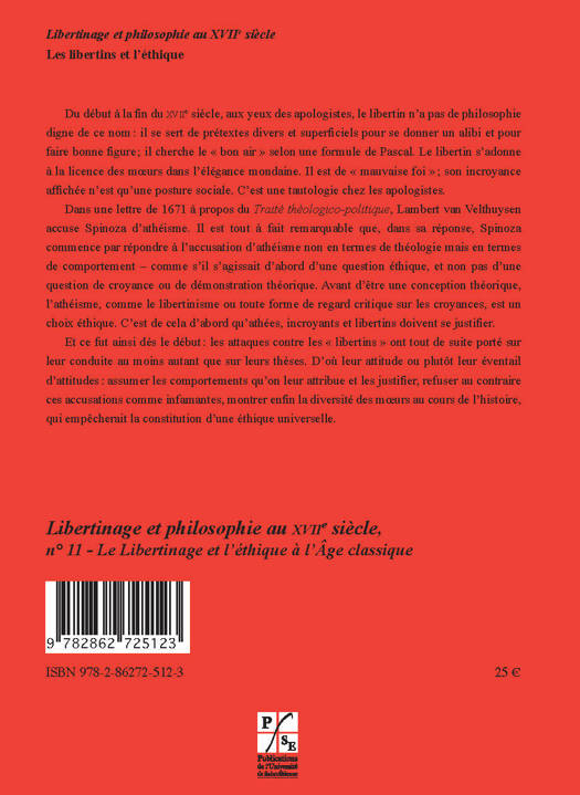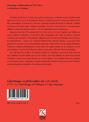 Les articles réunis ici s'interrogent sur les attaques portées à l'encontre des libertins sur leur conduite et leurs revendications. Il leur a fallu assumer leurs comportements et les justifier.