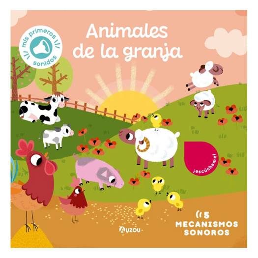 ¡Escucha y reconoce las voces del gallo, el cerdo, la oveja, la vaca y el burro!Disfruta una y otra vez de los sonidos de los animales de la granja con este libro cuidadosamente ilustrado y sus 5 mecanismos sonoros de larga duración.Incluye una última doble página que muestra todos los animales de la granja presentados a lo largo del libro con fotografías reales, ¡perfectas para estimular el desarrollo del lenguaje y el aprendizaje de vocabulario de los más pequeños de la casa!Fabricada en cartón grueso con esquinas redondeadas y con 5 sonidos para reconocer, la colección Mis primeras imágenes para escuchar presenta preciosas ilustraciones y cuidados sonidos para disfrutar y descubrir la naturaleza, los transportes, los animales y sus crías, o los instrumentos.