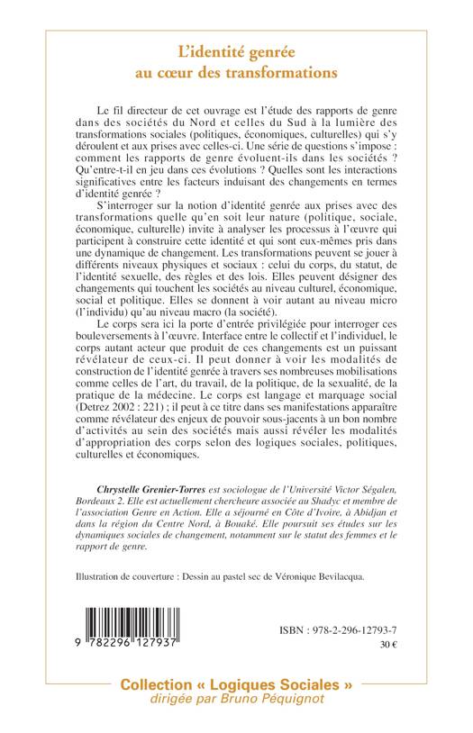 Cet ouvrage étudie les rapports de genre dans les sociétés du Nord et celles du Sud à la lumière des transformations sociales qui s'y déroulent et aux prises avec celles-ci. Comment les rapports de genre évoluent-ils dans les sociétés ? Qu'entre-t-il en jeu dans ces évolutions ? Quelles sont les interactions significatives entre les facteurs induisant des changements en terme d'identité genrée ? Le corps sera ici la porte d'entrée privilégiée pour interroger les bouleversements à l'uvre.