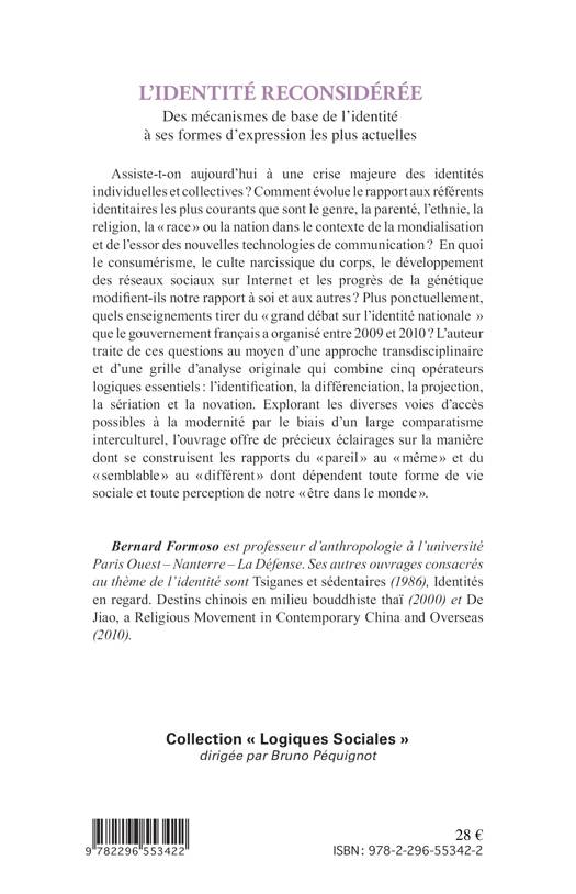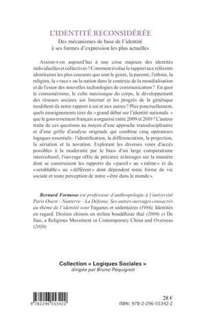 Assiste-t-on à une crise majeure des identités individuelles et collectives ? Comment évolue le rapport aux référents identitaires que sont le genre, la parenté, l'ethnie, la religion, la "race" ou la nation dans un contexte de mondialisation et d'essor des nouvelles technologies de communication ? L'auteur traite de ces questions au moyen d'une approche transdisciplinaire et d'une grille d'analyse qui combine cinq opérateurs : l'identification, la différenciation, la projection, la sériation et la novation.