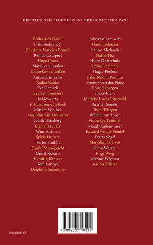 Met gedichten van onder anderen Charlotte Van den Broeck, Radna Fabias, Toon Tellegen, Marieke Lucas Rijneveld, Remco Campert, Ester Naomi Perquin en Rodaan Al Galidi.