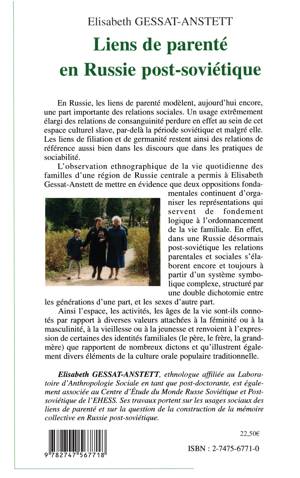 En Russie, les liens de parenté modèlent, aujourd'hui encore, une part importante des relations sociales. Un usage extrêmement élargi des relations de consanguinité perdure en effet au sein de cet espace culturel slave, par-delà la période soviétique et malgré elle. Les liens de filiation et de germanité restent ainsi des relations de référence aussi bien dans les discours que dans les pratiques de sociabilité.