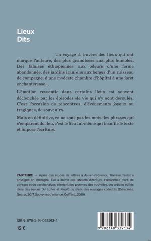 Un voyage à travers des lieux qui ont marqué l'auteure, des plus grandioses aux plus humbles. Des falaises éthiopiennes aux odeurs d'une ferme abandonnée, des jardins iraniens aux berges d'un ruisseau de campagne, d'une modeste chambre d'hôpital à une forêt enchanteresse... L'émotion ressentie dans certains lieux est souvent déclenchée par les épisodes de vie qui s'y sont déroulés. C'est l'occasion de rencontres, d'événements joyeux ou tragiques, de souvenirs. Mais en définitive, ce ne sont pas les mots, les phrases qui s'emparent du lieu, c'est le lieu lui-même qui insuffle le texte et impose l'écriture.