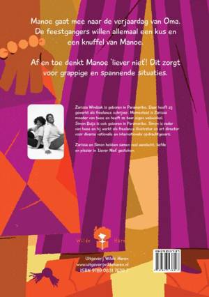 Manoe gaat mee naar de verjaardag van Oma. De feestgangers willen allemaal een kus en een knuffel van Manoe.