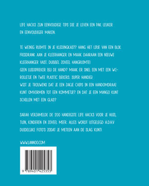 Praktische oplossingen voor alledaagse huis-, tuin en keukenproblemen Life hacks zijn eenvoudige tips die je leven een pak leuker en eenvoudiger maken. Te weinig ruimte in je kledingkast? Hang het lipje van een blik frisdrank aan je kleerhanger en maak daaraan een nieuwe kleerhanger vast. Dubbel zoveel hangruimte! Geen luidspreker bij de hand? Maak er snel een met een wc-rolletje en twee plastic bekers. Super handig! Wist je trouwens dat je een zakje chips in een handomdraai kunt omvormen tot een kommetje? En dat je een mango kunt schillen met een glas? Sarah verzamelde de 200 handigste life hacks voor je huis, tuin, kinderen en zoveel meer. Alles wordt uitgelegd aan de hand van duidelijke foto's zodat je meteen aan de slag kunt!