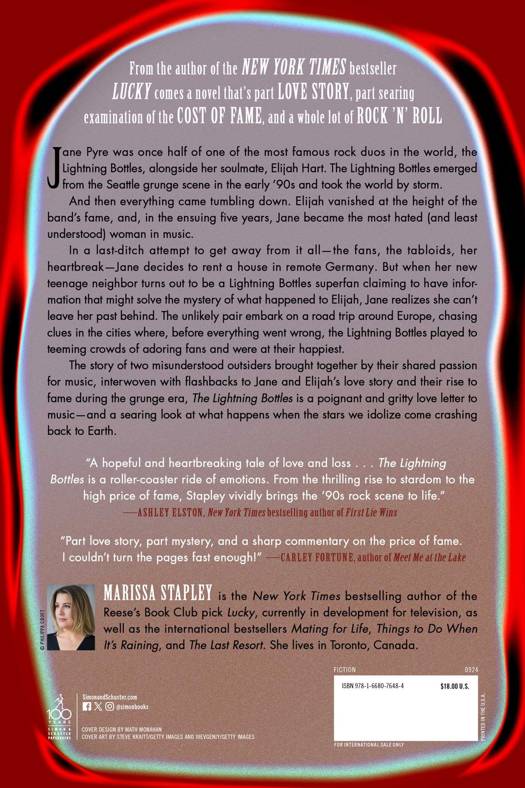 Jane Pyre was once half of the famous rock ‘n’ roll duo, the Lightning Bottles. Years later, she’s perhaps the most hated—and least understood—woman in music. She was never as popular with fans as her bandmate (and soulmate), Elijah Hart—even if Jane was the one who wrote the songs that catapulted the Lightning Bottles to instant, dizzying fame, first in the Seattle grunge scene, then around the world.