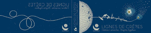 Hélène Lamarche et Brigitte Agulhon ont réalisé à quatre mains un objet éditorial qui instaure un dialogue entre le texte et l’image et qui ne rentre pas dans une forme classique. Il s’agit de 30 Cyanotypes brodés en dialogue avec un texte poétique Lignes de Crêtes. Lignes de Crêtes est un livre de mémoires et de liens. Un Leporello qui se déplie sur plus de six mètres de broderies et de mots pour nous entraîner sur les chemins tracés bien avant les humains. Mémoires des hommes et des femmes qui ont construit notre devenir. Mémoires des courages et des volontés qui ont bâti les lignes qui nous relient. Il y a quelque chose d’universel dans le texte de Brigitte Agulhon qui nous fait frissonner de cette fantastique humanité qu’il nous faut continuer à construire. La rencontre de ce texte poétique avec l’œuvre d’Hélène Lamarche nous déroule un parcours étoilé de broderies végétales, semé d’éclats d’ocres, comme un immense paysage qui se dévide, d’une image à l’autre, toutes reliées par le travail du fil. Les cyanotypes patiemment brodés, entrent en résonance intime avec les mots agiles et mystérieux de ce texte étonnant. Les images et le texte disent en effet chacun à leur façon la permanence et l’impermanence des choses, la présence et l’absence. Ils ouvrent sur des paysages intérieurs reliés à des territoires bien réels où le bleu de l’horizon est omniprésent. Un fil à déplier pour un moment de pur bonheur. Lignes de Crêtes est une œuvre majeure dans notre collection de merveilles.