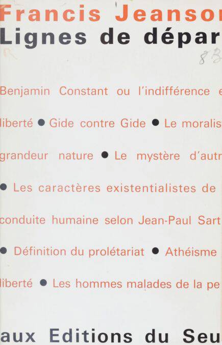 Les essais qui se trouvent ici rassemblés s’échelonnent sur une dizaine d’années : ils ne sauraient donc être considérés comme des points de départ, mais comme l’indication de certaines lignes, de certains axes permanents, auxquels le lecteur trouvera peut-être intéressant de se référer pour une véritable compréhension des engagements personnels de l’auteur.