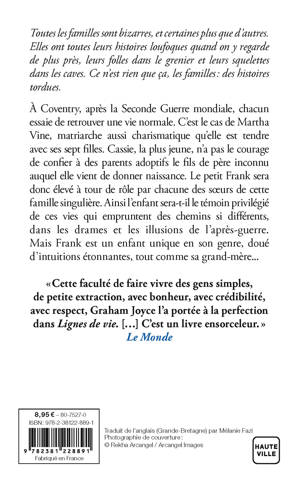 À Coventry, après la Seconde Guerre mondiale, chacun essaie de retrouver une vie normale. C'est le cas de Martha Vine, matriarche aussi charismatique qu'elle est tendre avec ses sept filles. Cassie, la plus jeune, n'a pas le courage de confier à des parents adoptifs le fils de père inconnu auquel elle vient de donner naissance. Le petit Frank sera donc élevé à tour de rôle par chacune des soeurs de cette famille singulière. Ainsi l'enfant sera-t-il le témoin privilégié de ces vies qui empruntent des chemins si différents, dans les drames et les illusions de l'après-guerre. Mais Frank est un enfant unique en son genre, doué d'intuitions étonnantes; tout comme sa grand-mère, qui a un don de prémonition...