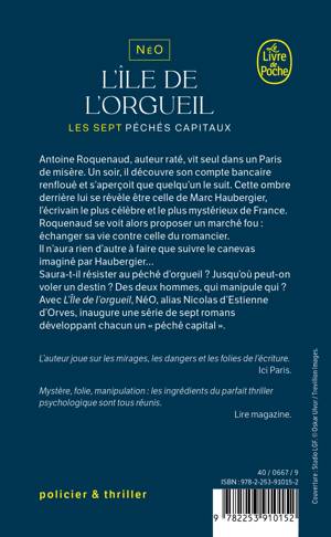 Avec L’Île de l’orgueil, NéO, alias Nicolas d’Estienne d’Orves, inaugure une série de sept romans développant chacun un « péché capital ».