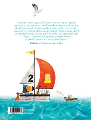 Emporté par les vagues, Éléphant échoue sur un îlot à peine assez grand pour ses pattes et où l'attendent solitude et désolation. Quand, par miracle, les bateaux d'une souris, d'un chien ou d'un crocodile se profilent à l'horizon, il suffit qu'Éléphant saute à bord pour les faire couler, les uns après les autres. La situation devient critique... Comment les nouveaux rescapés vont-ils s'y prendre pour tenir dans si peu d'espace?