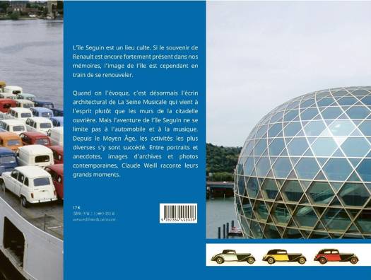 L'île Seguin est un lieu culte. Si le souvenir de Renault est encore fortement présent dans nos mémoires, l'image de l'île est cependant en train de se renouveler. Quand on l'évoque, c'est désormais l'écrin architectural de La Seine Musicale qui vient à l'esprit plutôt que les murs de la citadelle ouvrière. Mais l'aventure de l'île Seguin ne se limite pas à l'automobile et à la musique. Depuis le Moyen Âge, les activités les plus diverses s'y sont succédé. Entre portraits et anecdotes, images d'archives et photos contemporaines, Claude Weill raconte leurs grands moments. L'auteur : Habitant de Boulogne, Claude Weill est l'auteur de nombreux ouvrages illustrés sur l'histoire des objets et les lieux de notre vie quotidienne, dont Au bon vieux temps (Éditions Ouest France), et Molitor - Les piscines et la patinoire (Éditions Glyphe). Aux Éditions du Palio, il a publié Zéro tristesse ! (illustrations de Claire Maupas) et Coup de tabac sur la pub.